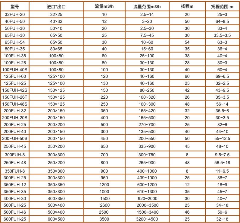 FUH系列工程塑料泵是在消化吸收引進(jìn)設(shè)備的基礎(chǔ)上,結(jié)合國內(nèi)耐腐蝕離心泵結(jié)構(gòu)的優(yōu)點(diǎn)精心設(shè)計而成,該系列泵過流部件采用超高分子量聚乙烯(UHMWPE)制作,其耐腐蝕性能優(yōu)良、耐磨性能優(yōu)異(居各種塑料之首)、耐沖擊性能強(qiáng)。泵的密封分別采用機(jī)械密封、動力密封和填料密封等多種密封形式,既可以輸送酸堿清液,也可以輸送含固體顆粒的料漿和含各種雜質(zhì)的污水,尤其在輸送含細(xì)顆粒的腐蝕性液體和輸送氫氟酸、氟硅酸、磷酸、混酸、電解液、鹽酸、稀硫酸、濃堿等方面顯示了優(yōu)良性能。