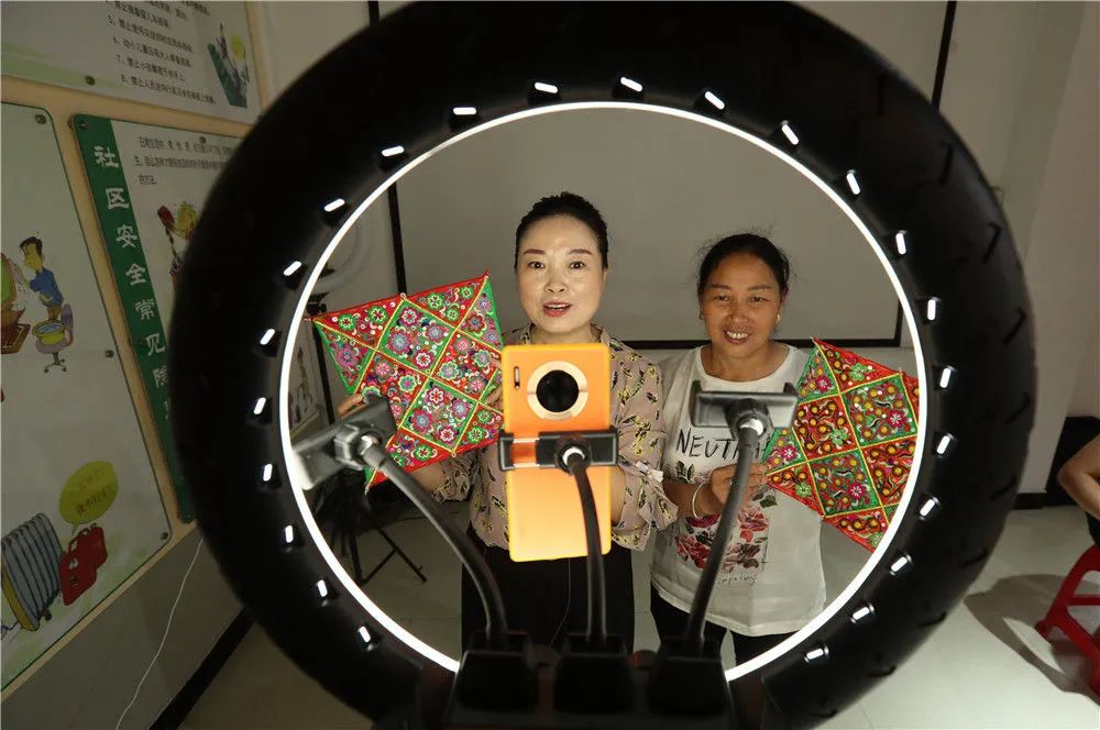 7月5日,在貴州省黔東南苗族侗族自治州榕江縣場壩社區(qū)服務中心網絡直播營銷技能培訓教室里,學員在直播營銷刺繡手工藝品。新華社發(fā)(李長華 攝)