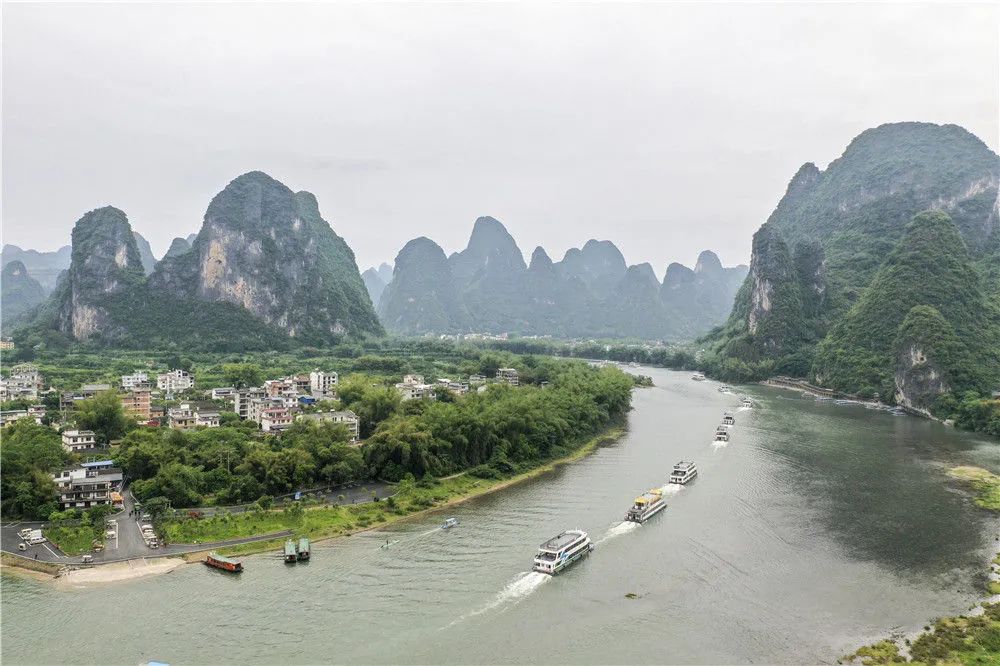 這是4月25日拍攝的漓江廣西陽朔段(無人機照片)。新華社記者 曹祎銘 攝