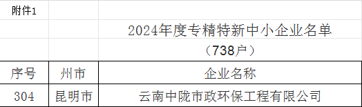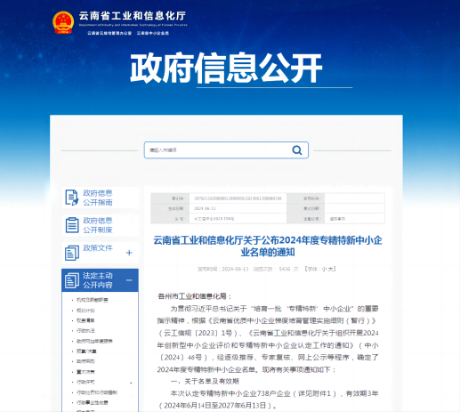 2024年6月13日,云南省工業和信息化廳發布《2024年度專精特新中小企業名單》,云南加拿大28咪牌市政環保工程有限公司榮獲專精特新中小企業稱號。