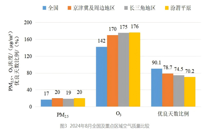 8月,京津冀及周邊地區“2+36”城市PM2.5平均濃度為20微克/立方米,同比下降13.0%;O3平均濃度為170微克/立方米,同比下降6.1%。