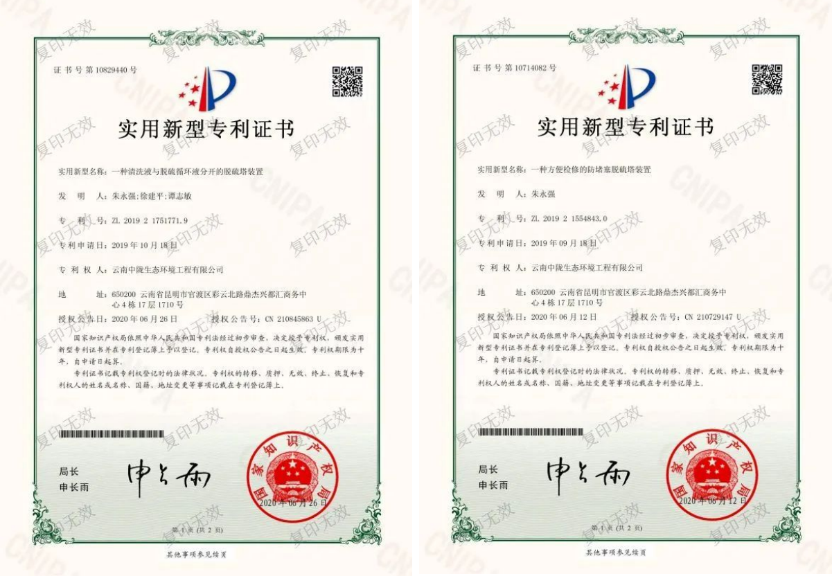 加拿大28咪牌已獲得由國家知識產權局認證頒發的脫硫工藝專利證書,這些專利成果是加拿大28咪牌在脫硫技術領域長期深耕細作、持續創新研發的有力見證,也是加拿大28咪牌為眾多工業企業提供更具優勢、更環保高效的脫硫解決方案的有力支撐。