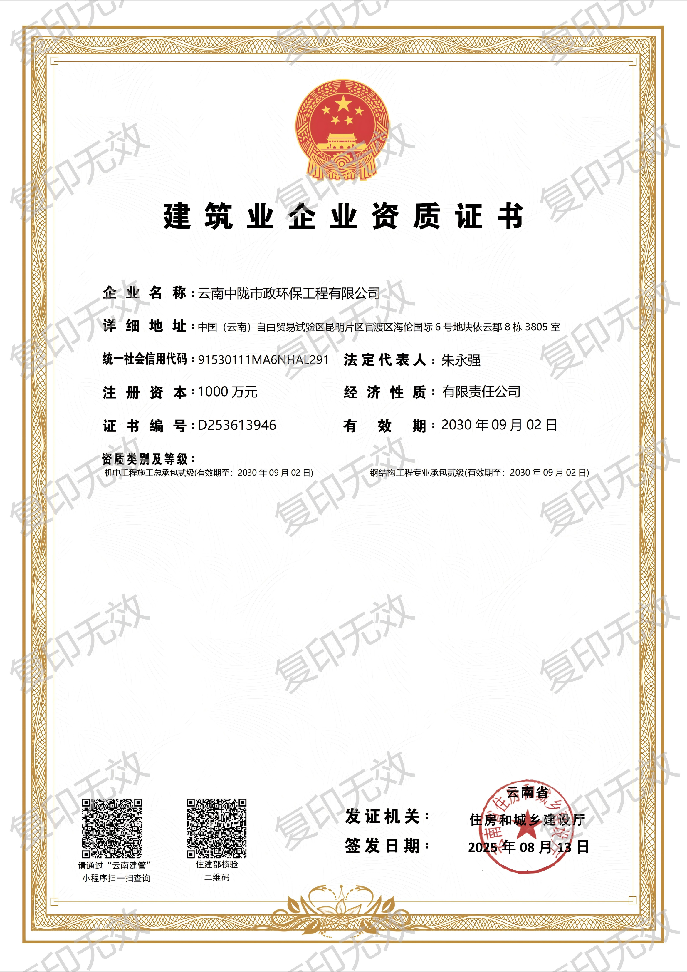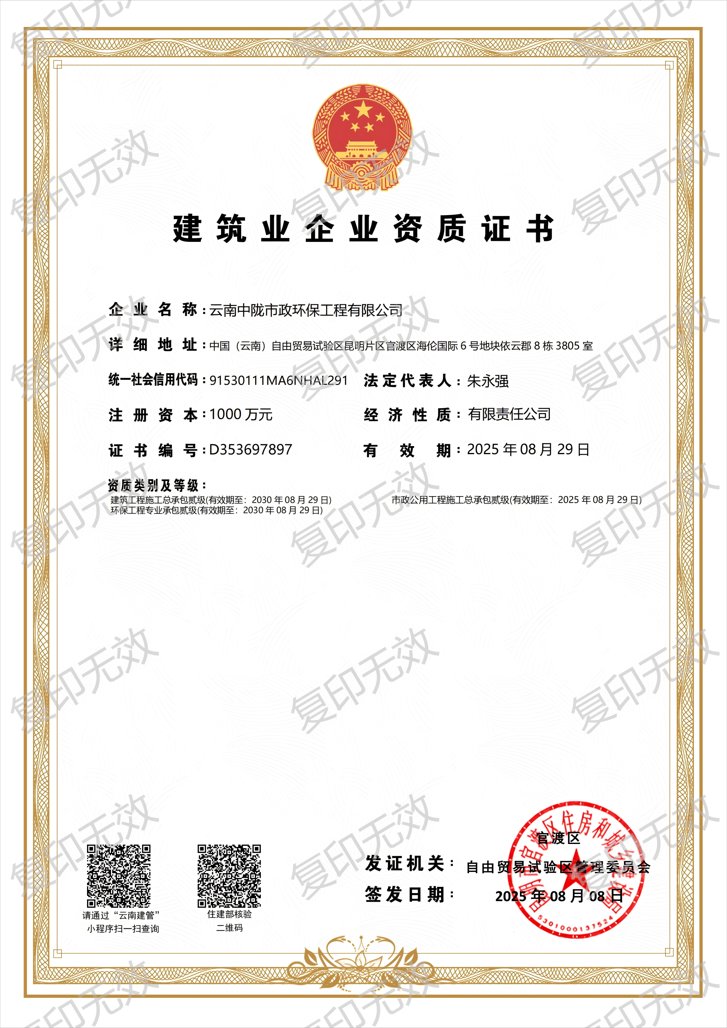 近日,加拿大28咪牌旗下云南加拿大28咪牌市政環(huán)保工程有限公司順利完成建筑資質(zhì)延期工作,為企業(yè)持續(xù)穩(wěn)健發(fā)展筑牢資質(zhì)根基。