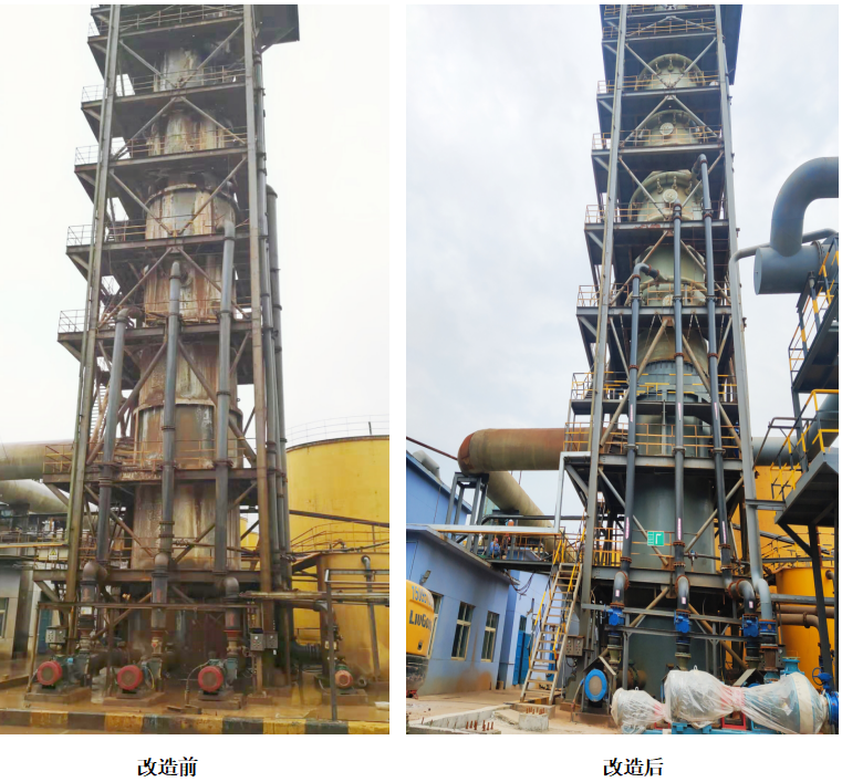 本次改造內容包括脫硫塔改造、脫硫塔鋼架樓梯改造及脫硫引風機增設旁通煙道。