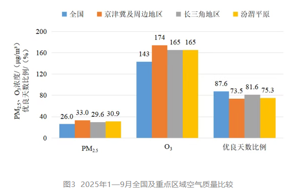 1—9月,京津冀及周邊地區“2+36”城市PM2.5平均濃度為33.0微克/立方米,同比下降15.6%;O3平均濃度為174微克/立方米,同比下降7.0%;平均優良天數比例為73.5%,同比上升8.5個百分點;平均重度及以上污染天數比例為0.8%,同比下降1.2個百分點。由沙塵天氣導致的平均超標天數比例為3.4%,其中重度及以上污染天數比例為0.3%。