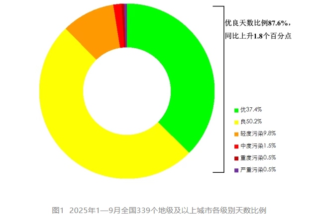 生態環境部公布2025年9月和1—9月全國環境空氣質量狀況