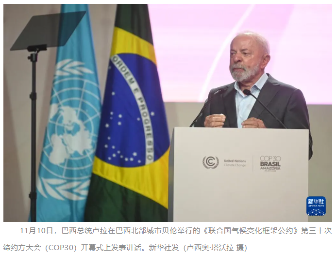 巴西總統盧拉在開幕式上呼吁各國兌現氣候承諾、加快氣候行動,并推動以人為本的氣候議程。